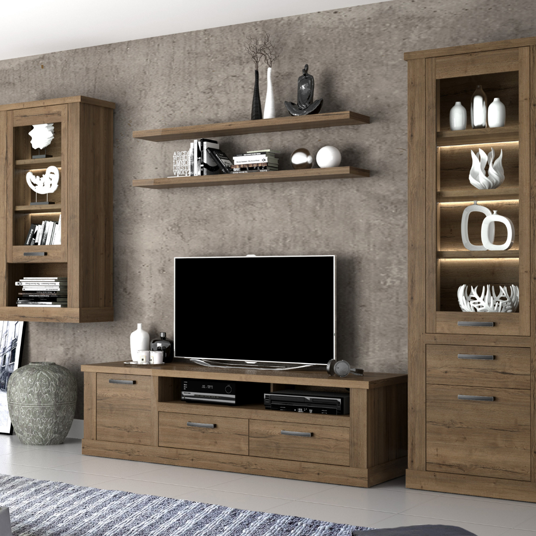 Discover the elegance of the Corona collection, a perfect blend of practical and sophisticated furniture solutions. Designed with versatility in mind, this collection features an array of stylish options, including display cabinets, coffee tables, and sideboards, each crafted to enhance your living space. The warm artisan oak finish adds a touch of natural beauty, ensuring that every piece not only serves a functional purpose but also elevates your home’s aesthetic appeal. Whether you seek secure storage or striking display options, the Corona collection redefines home organisation with its unique combination of open recesses, drawers, and shelves. Transform your interior with the Corona collection and enjoy a seamless balance of style and functionality.