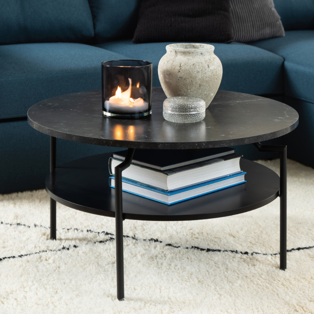 Elevate your living space with the sophisticated Goldington collection. This stylish selection features round coffee tables designed to blend modern elegance with everyday functionality. Each table showcases stunning matte wild oak or marble effect tops that bring a touch of luxury to your decor. The open shelf design offers practical storage solutions without sacrificing aesthetics, while the robust matte black steel base ensures long-lasting durability. Discover the perfect centrepiece for your lounge, combining contemporary style with versatility. Refresh your home with the Goldington collection and enjoy the ideal balance of beauty and practicality.