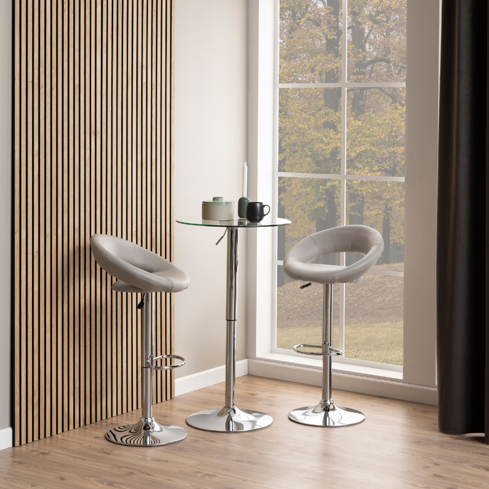 Elevate your home décor with our Plump collection of stylish bar stools, designed for both comfort and modern elegance. Each stool features a sleek design, upholstered in premium polymer, which adds a contemporary touch to your bar or kitchen counter. The sturdy trumpet base made of chrome steel ensures durability and stability, while the gas lift and swivel functionalities provide ultimate flexibility for any seating arrangement. Perfect for entertaining guests or enjoying a casual meal, these bar stools combine functionality with chic style. Explore the Plump collection today and transform your space into a trendy retreat!