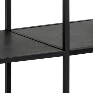 Stylish 2-Shelf Black Marble Bookcase with Sturdy Metal Frame & Smoked Glass Accents