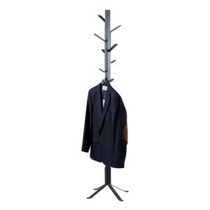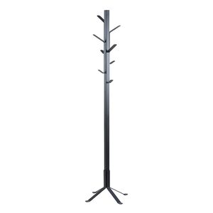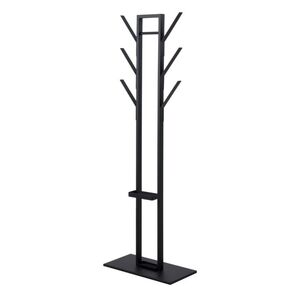 Add a sleek touch to your entryway with our coat hanger, featuring a matte black powder-coated steel frame and base. Its asymmetrical design provides a modern twist, making it a practical and stylish choice for hanging your coats and accessories.