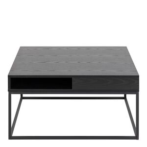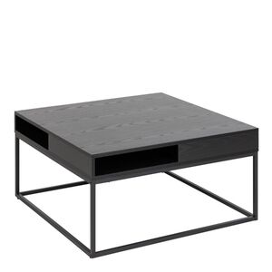 80Cm Square Black Ash Coffee Table with Open Storage and Sturdy Matte Black Steel Base