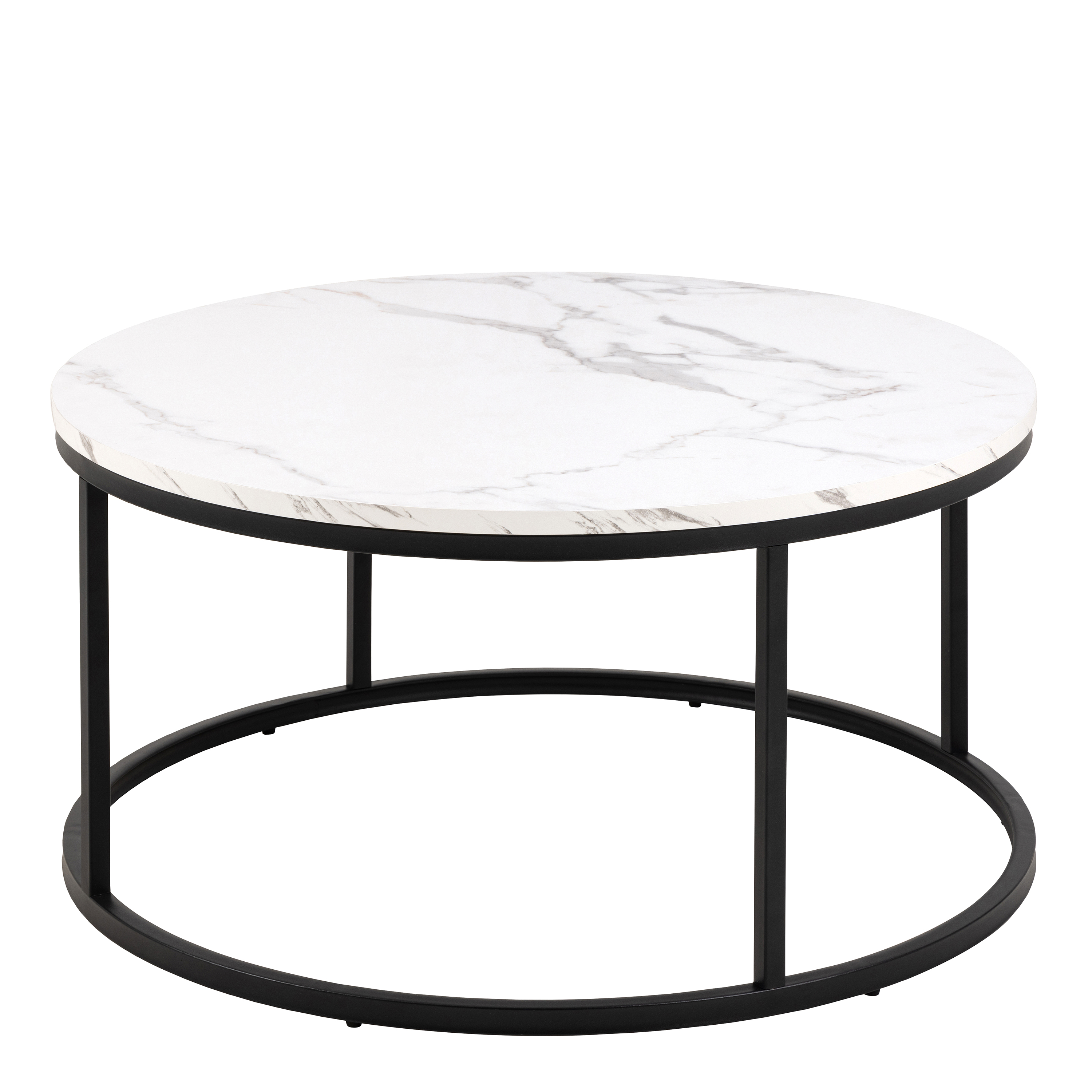 Elegant 80Cm Round Coffee Table with Marble Effect Top & Matte Black Steel Base