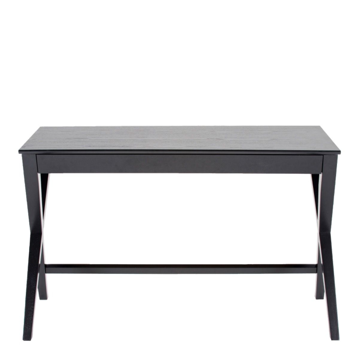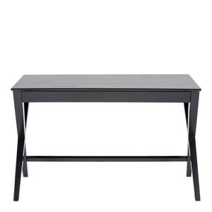 120cm Black Office Desk With 1 Spacious Drawer, Modern X-Shaped Legs & Lacquered Oak Finish