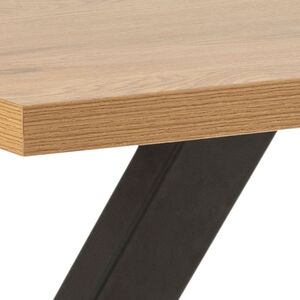 Elevate your dining experience with our rectangular table, featuring a textured wild oak effect top for a touch of rustic charm, and a striking cross base in matte black steel for a modern contrast. It''s a stylish centerpiece that blends natural beauty with industrial design.