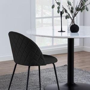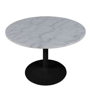 110Cm Round Dining Table With White Marble Top & Chic Black Trumpet Base