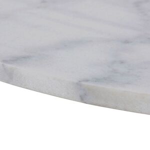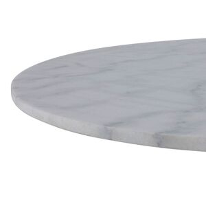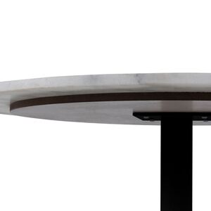 Experience the elegance of our round dining table, featuring a pristine white marble top and a striking matte black/white trumpet base. Its circular design invites conversation, making it an ideal centerpiece for intimate gatherings.