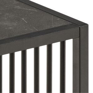 Explore the Strington range, where modern elegance meets robust functionality. Stability is guaranteed by sturdy metal frames, ensuring durability and reliability. The collection features a captivating black marble look and tempered, smoked glass.