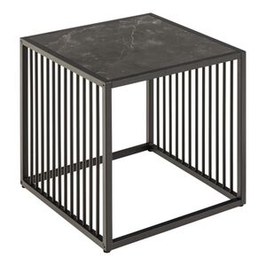 Strington 40Cm Black Marble Effect Side Table With Smoked Glass Top – Modern & Durable Design