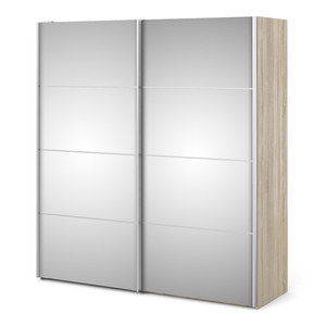 Sliding Wardrobe 180cm In Oak With Mirror Doors With 5 Shelves