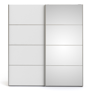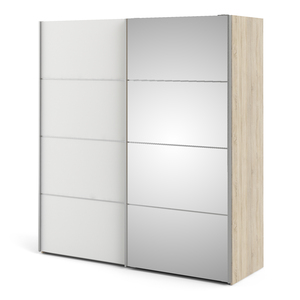 Sliding Wardrobe 180cm In Oak With White And Mirror Doors With 5 Shelves