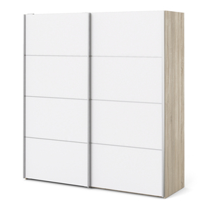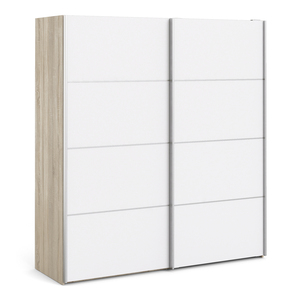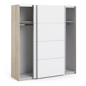 Sliding Wardrobe 180cm In Oak With White Doors With 2 Shelves