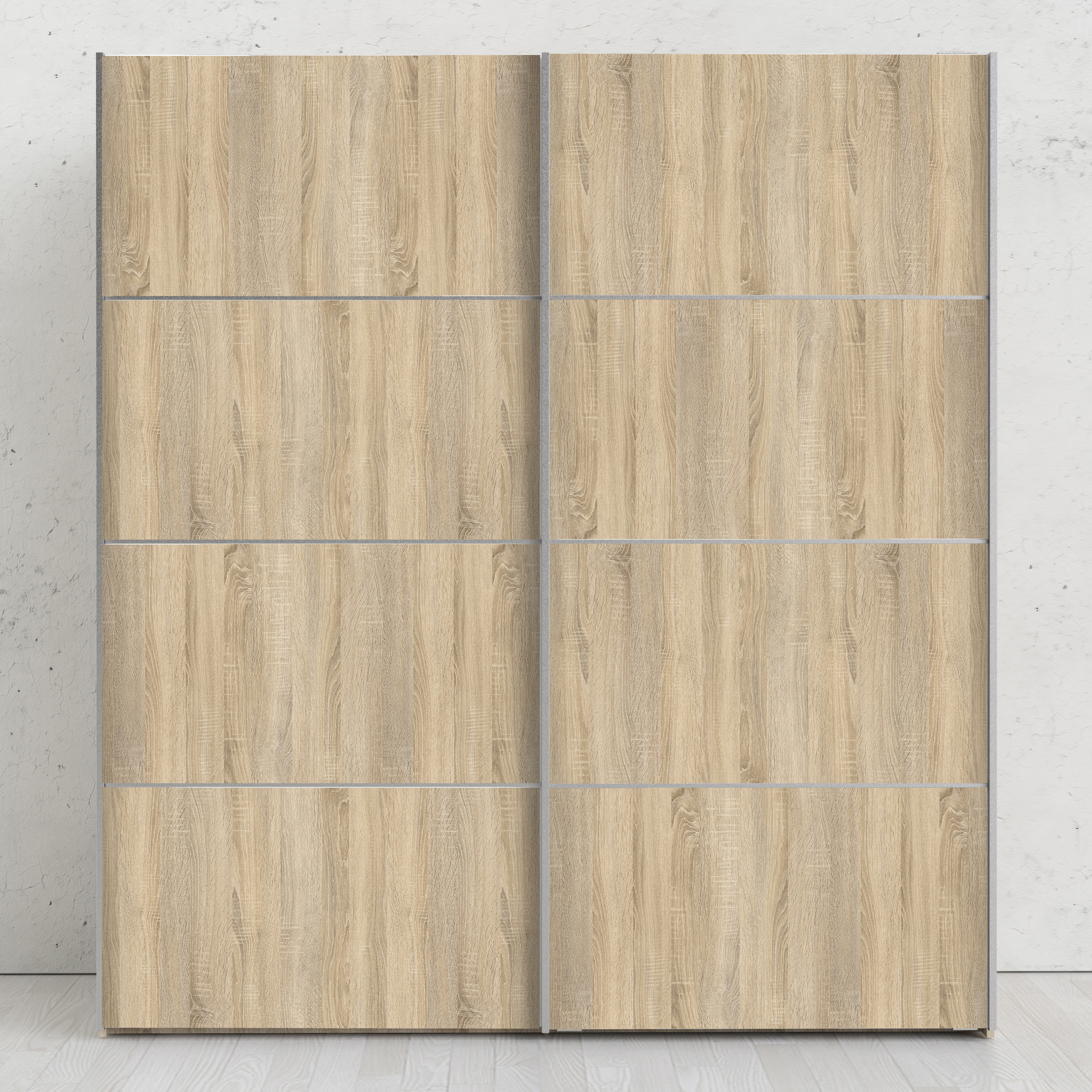 180Cm Modern White Sliding Wardrobe With Oak Doors, Custom Storage & 5 Shelves