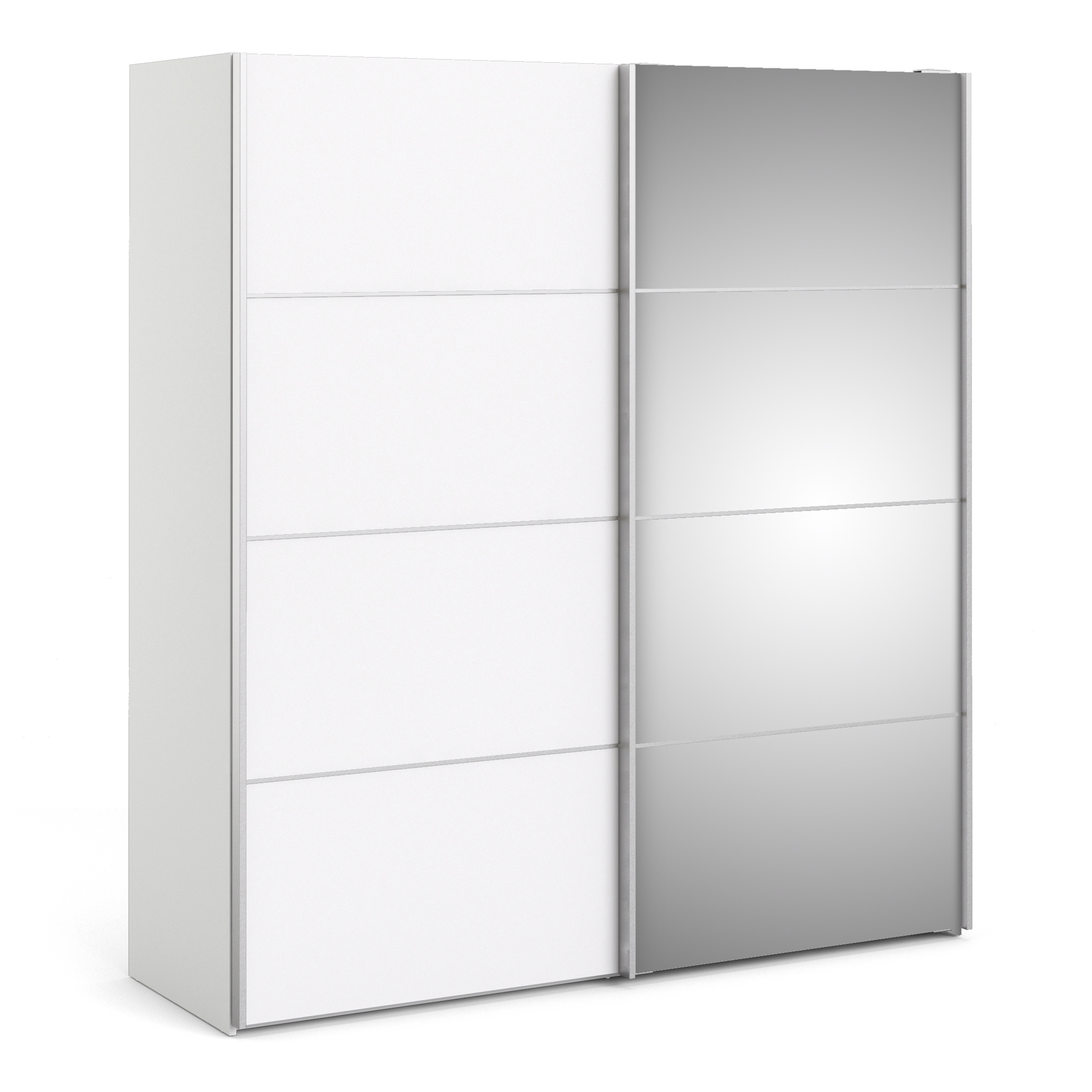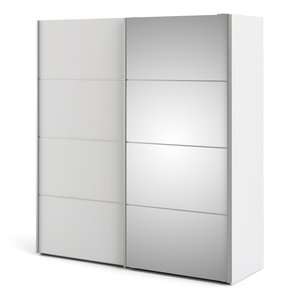 Modern 182Cm White Sliding Wardrobe With Mirror Doors & 5 Adjustable Shelves for Stylish Bedroom Storage