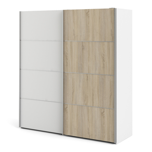 180Cm White Sliding Wardrobe With Oak Doors, 2 Shelves & Modern Design For Optimal Bedroom Storage