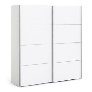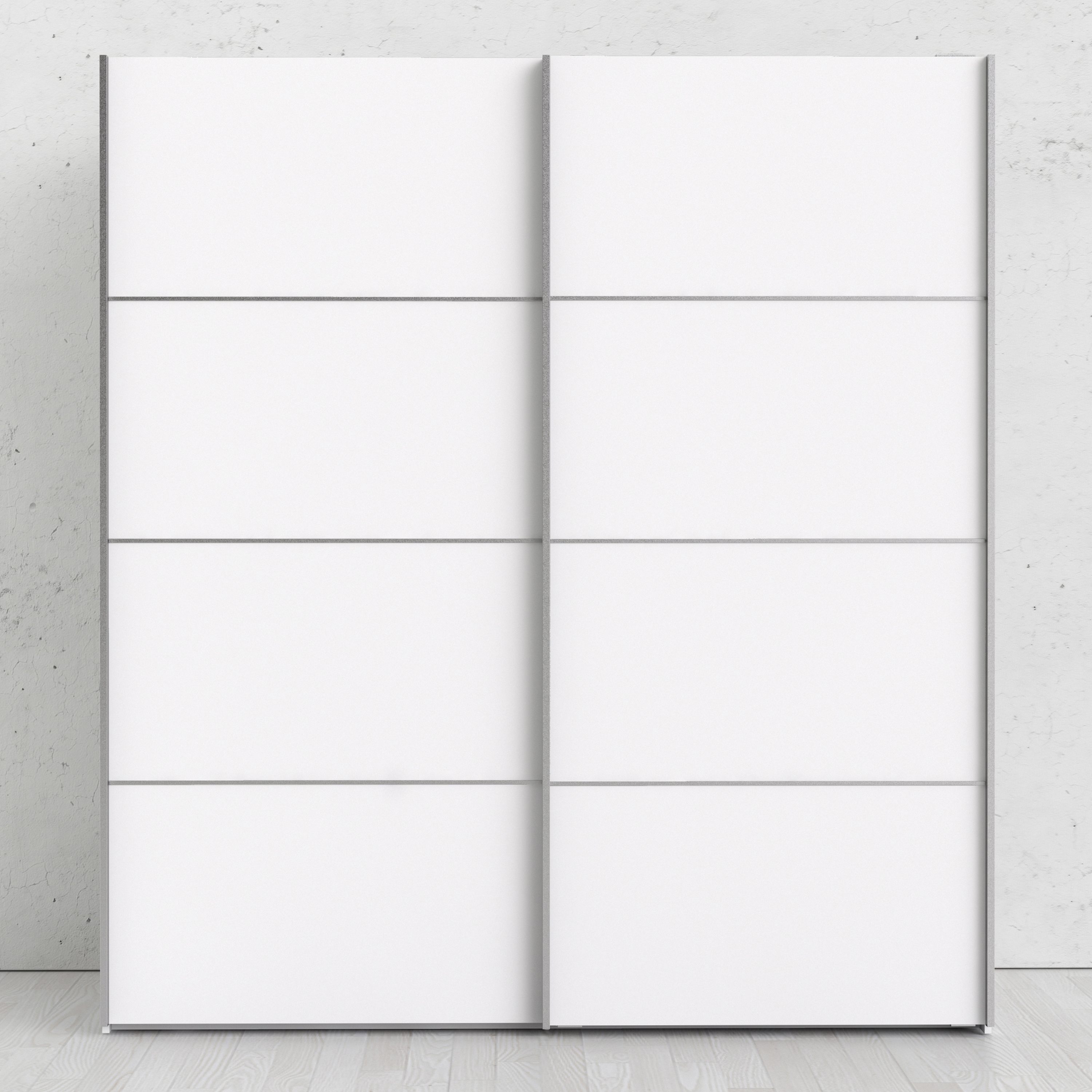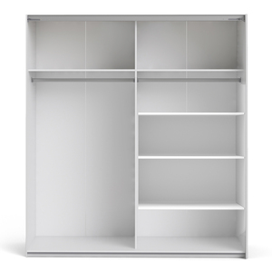182Cm Customisable Modern White Sliding Wardrobe with 5 Shelves for Versatile Bedroom Storage